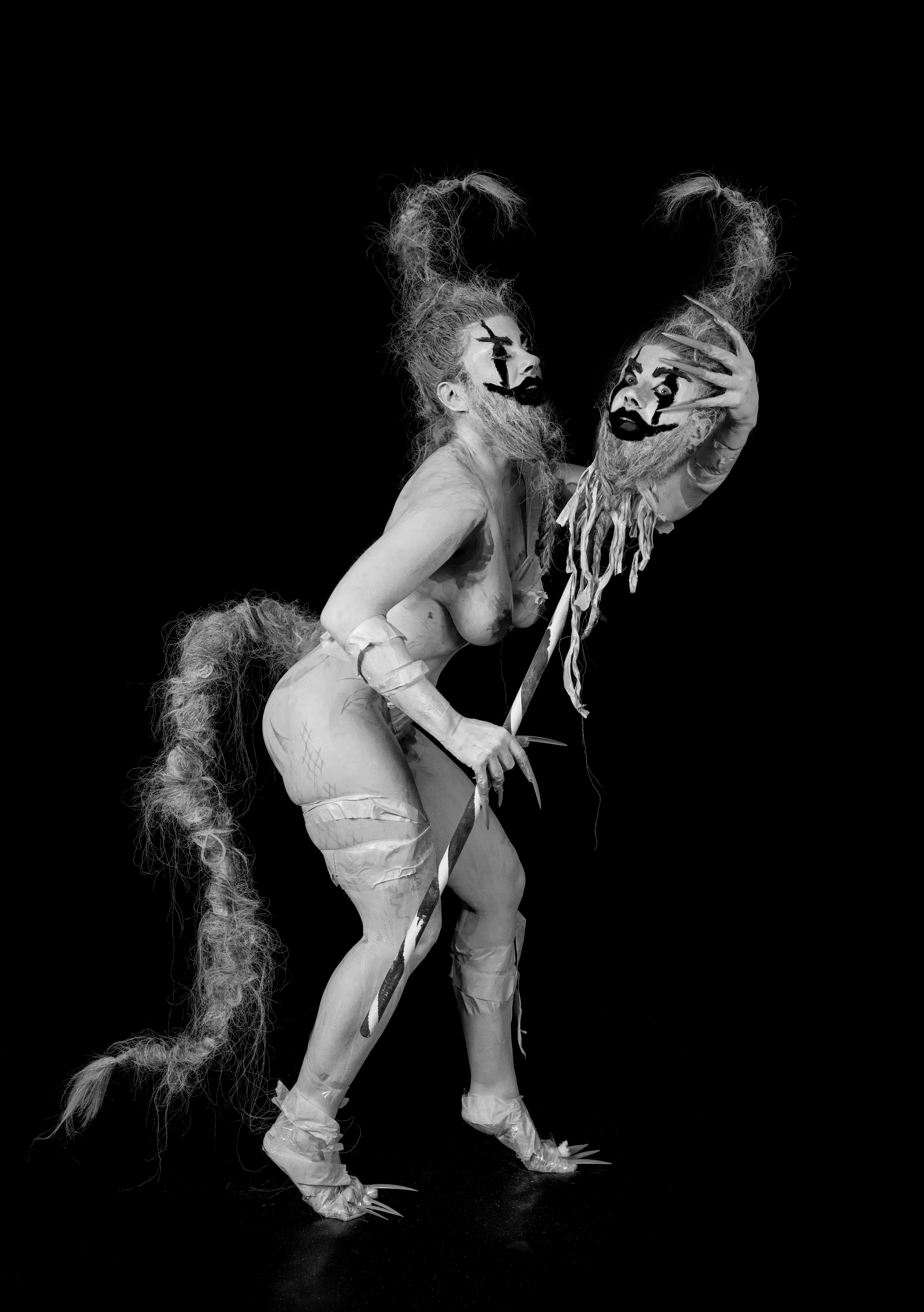 We present Alina Kleytman’s solo exhibition A Horrible End or an Endless Horror? The works in the show are part of the long-running series Endless Shine of Human Violence, which the artist began on 24 February 2022. It was at this time that the character of Dirty White also emerged—a propagandist of the world’s most fascinating entertainment for all humankind: endless wars and boundless violence.