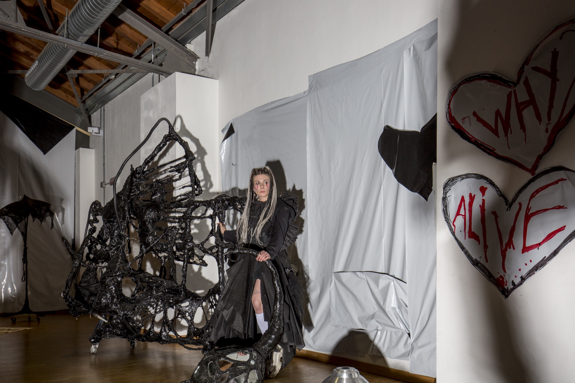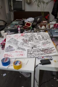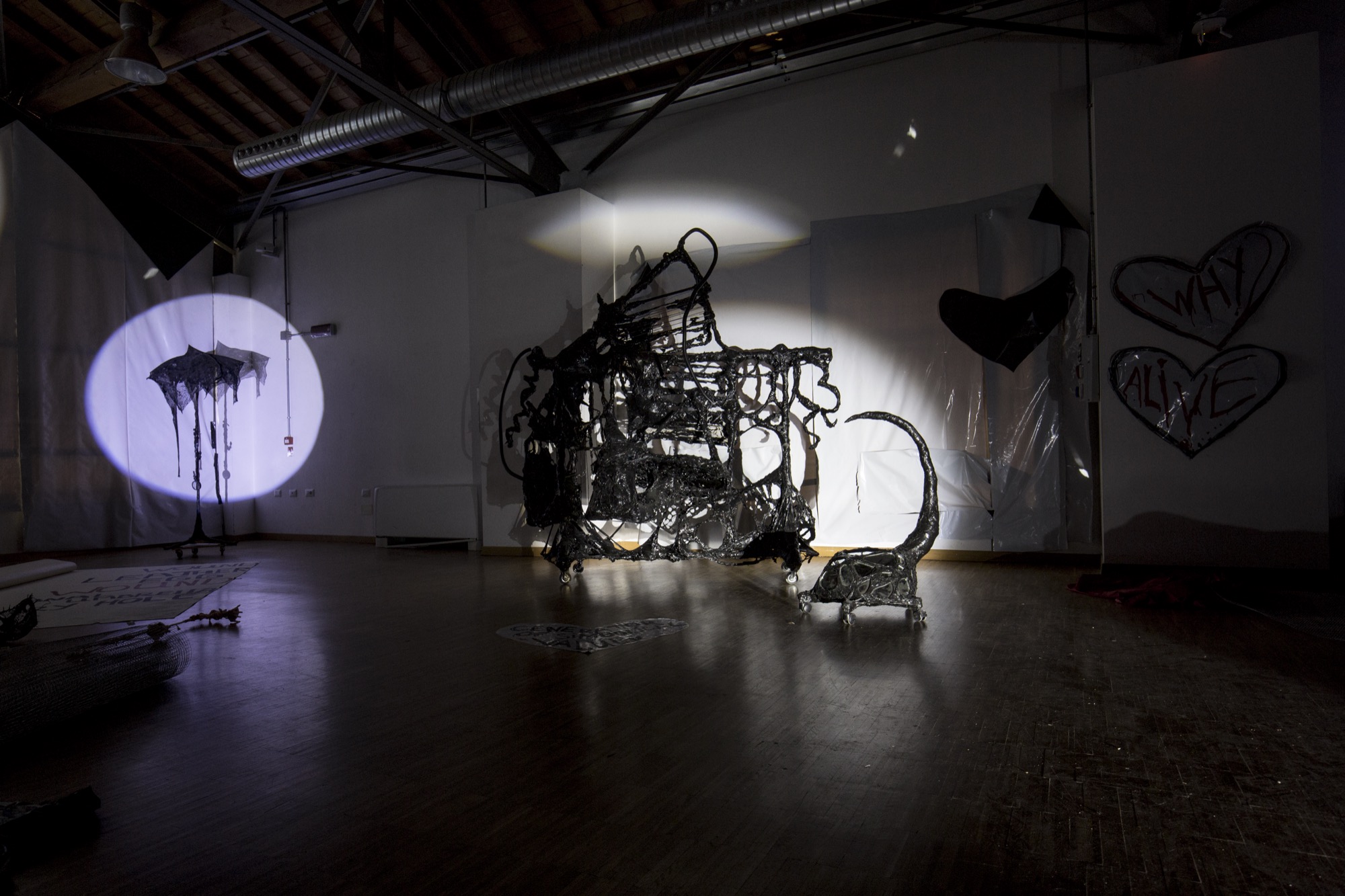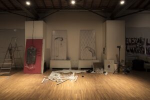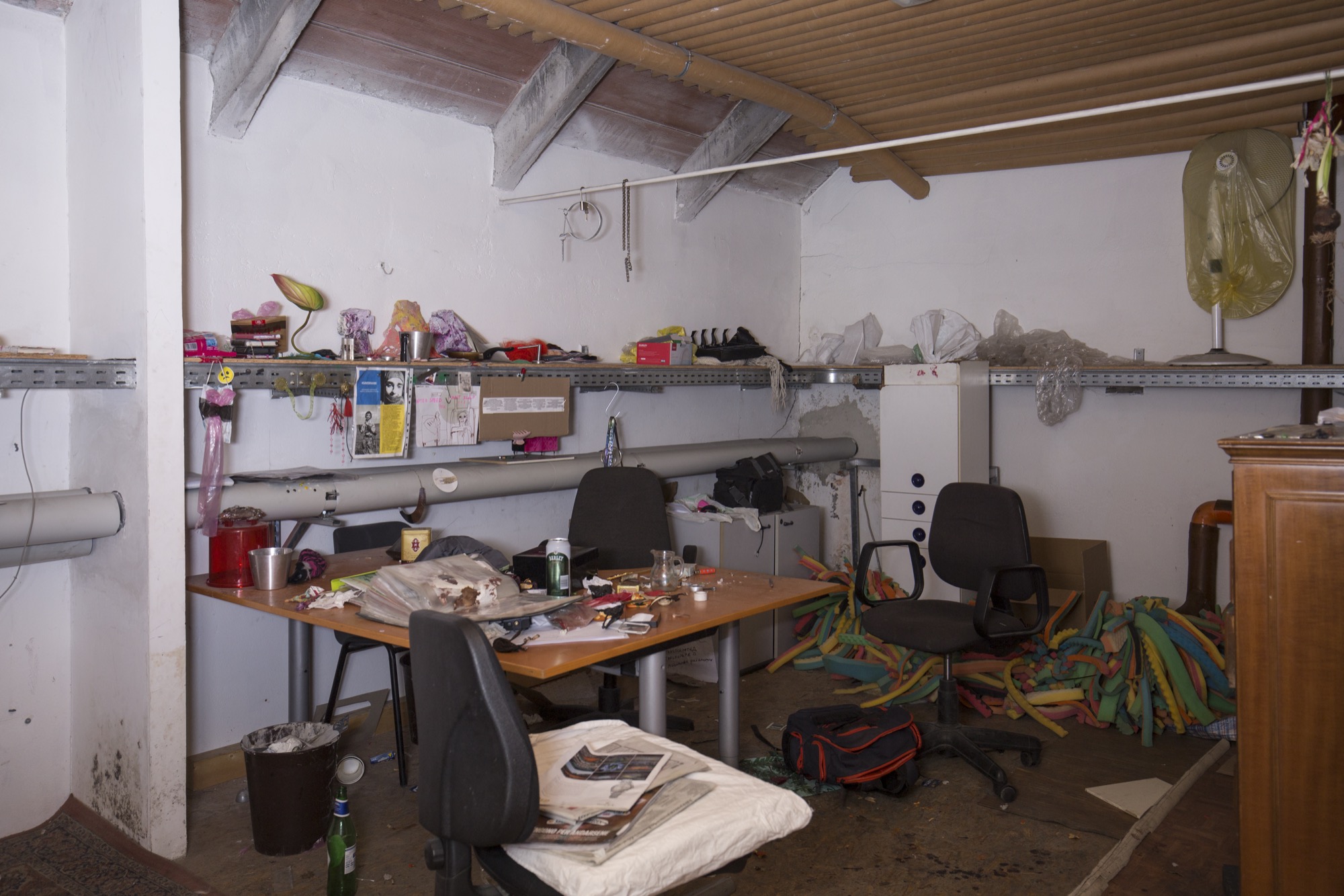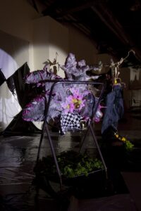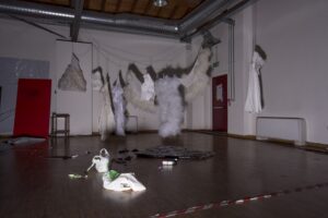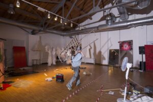 The reality that artists perceived during their residency was transposed in its final restitution into an exhibition space, the museum, which was also inhabited by the artists and became the continuation of their creation process as they built environments and artworks until the very last day. The works were designed to be on wheels to opti-mise their transportation and allow them to swiftly leave, following the finissage, to new destinations and adapt to them, however precarious they might be.