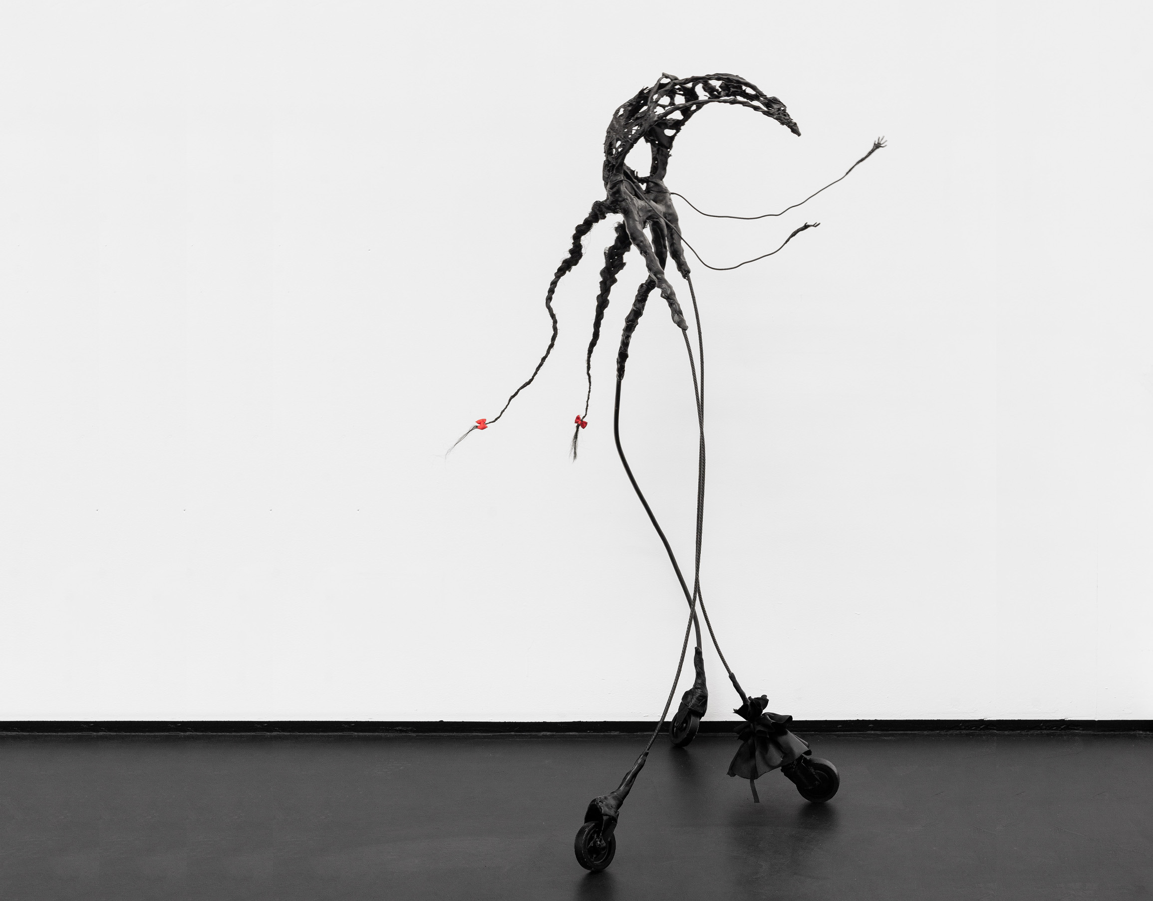 On black little wheels.